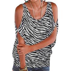 Animal Print Leopard Cold Shoulder 1/2 Sleeves Casual Blouses