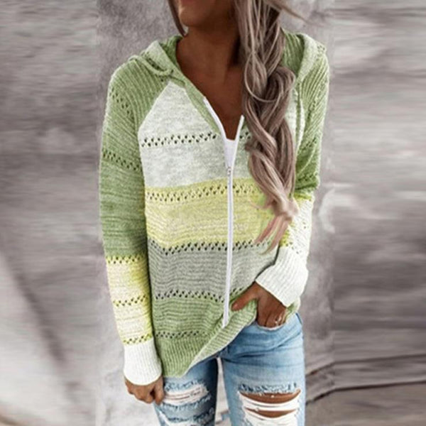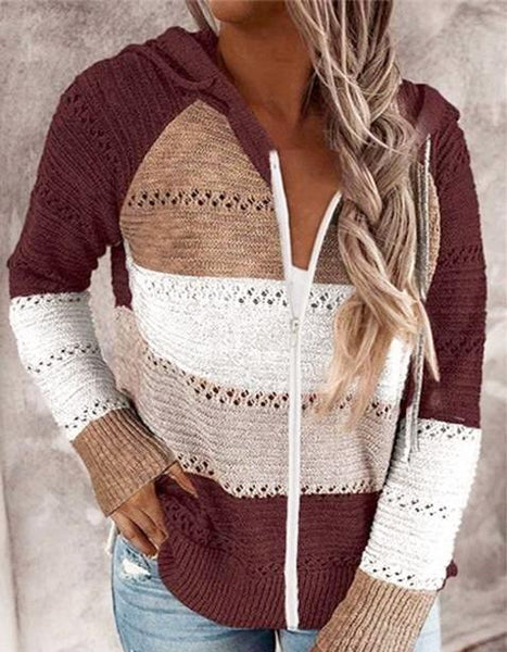 Casual Hollow Out Full-Zip Hoodie Sweater